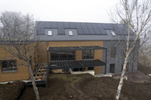 H I Building Contractors Ltd., located in Horsham, West Sussex, for their installation of a TapcoSlate roof on a new build project located in Cowfold in 2021. The TapcoSlate roof, in Pewter Grey, was selected primarily for its impact resistance as an overhanging fir trees' falling pinecones repeatedly broke the clay tiles as they fell on the roof. Of course, the chosen tiles also needed to reflect the natural beauty of the area.