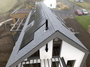 Yes. Solar panels can be fitted to Select Shake, with some care because of the high profile of the tiles. Solar frames will need the tiles to be cut to provide a flat area for the frames to sit on, or the tiles can worked around a sunken solar framework, depending on the type of solar installation. The only thing we stipulate is that the solar panels are fitted to the manufacturers specifications and that the panels are secured to the wooden roof frame, not just to the tiles to hold them in place and appropreately sealed. Note that Westlake Tapco Europe Limited does not warrant third-party installations such as solar panels and warranty should be sought from the panel manufacturer.