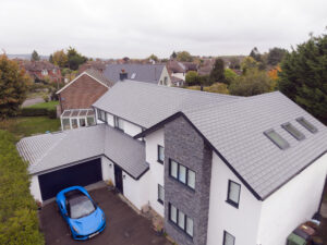RF Roofing Ltd., out of Coldstream, Berwickshire, for their installation of an energy efficient TapcoSlate roof on a new build project located in Lanark, Scotland in 2024. RF Roofing Ltd., has fitted more than 75,000 TapcoSlate Classic tiles into place during the past 11 years on at least 30 different projects - however, this was the first time the company had ever used the composite slate product alongside solar panels.