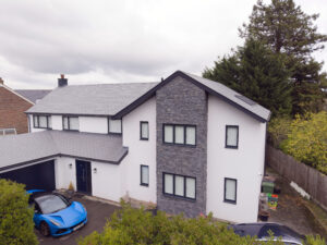 RF Roofing Ltd., out of Coldstream, Berwickshire, for their installation of an energy efficient TapcoSlate roof on a new build project located in Lanark, Scotland in 2024. RF Roofing Ltd., has fitted more than 75,000 TapcoSlate Classic tiles into place during the past 11 years on at least 30 different projects - however, this was the first time the company had ever used the composite slate product alongside solar panels.