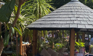These beautiful, bespoke gazebos feature a round, “turret-shaped” TapcoSlate Classic roof and are unique to BreezeHouse Designs in Staffordshire (www.breezehouse.co.uk).